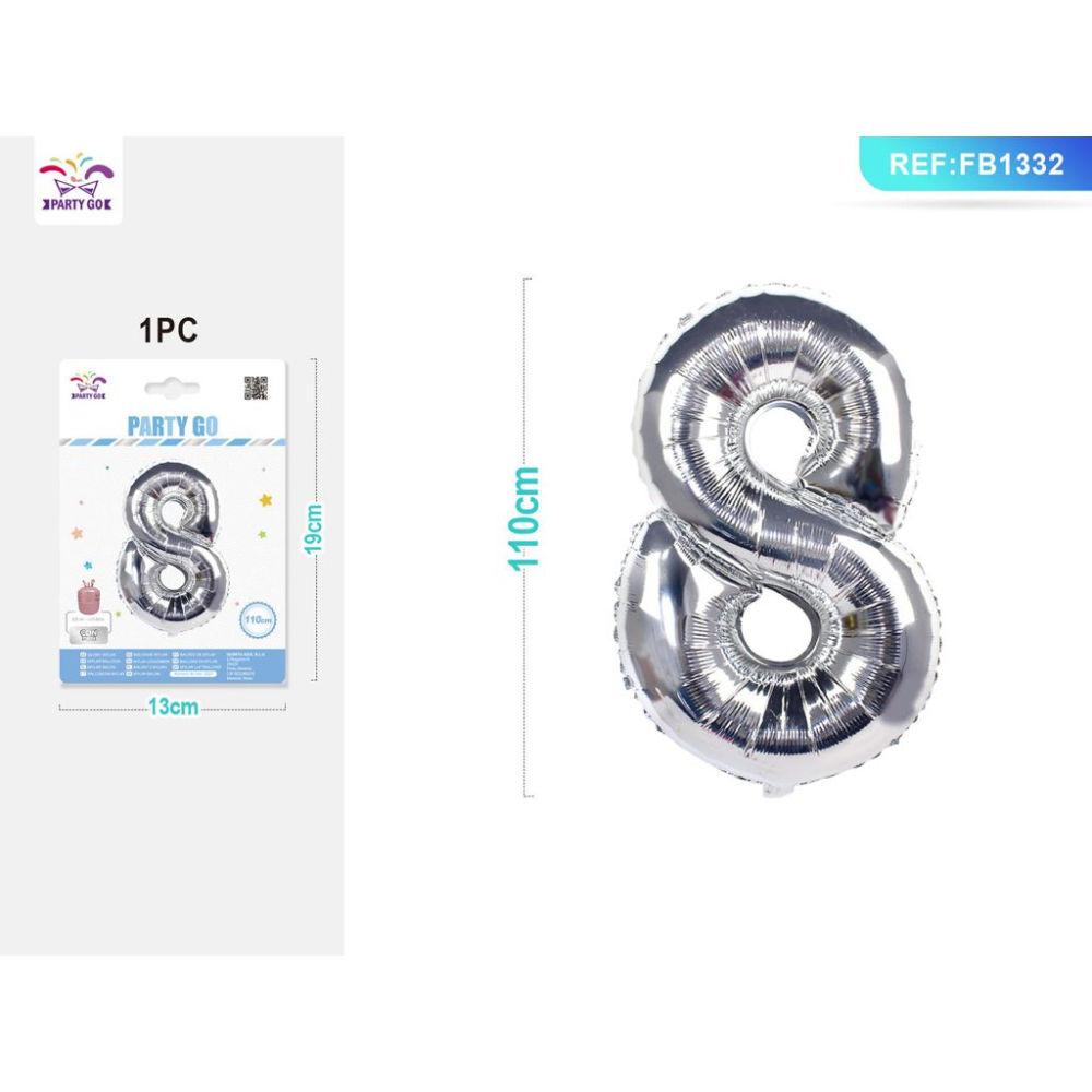 PALLONCINO MYLAR 110CM NUMERO 8 ARGENTO 1PZ