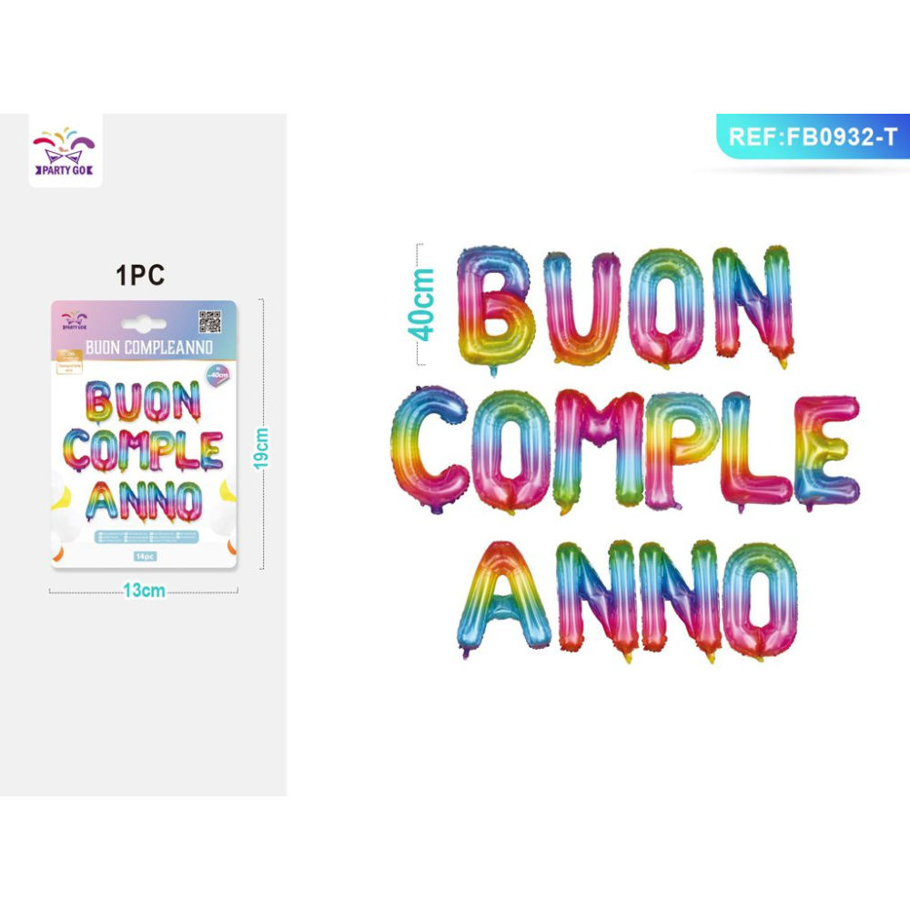 Set Palloncini in Mylar a Lettere Buon Compleanno Multicolore 14 Pezzi